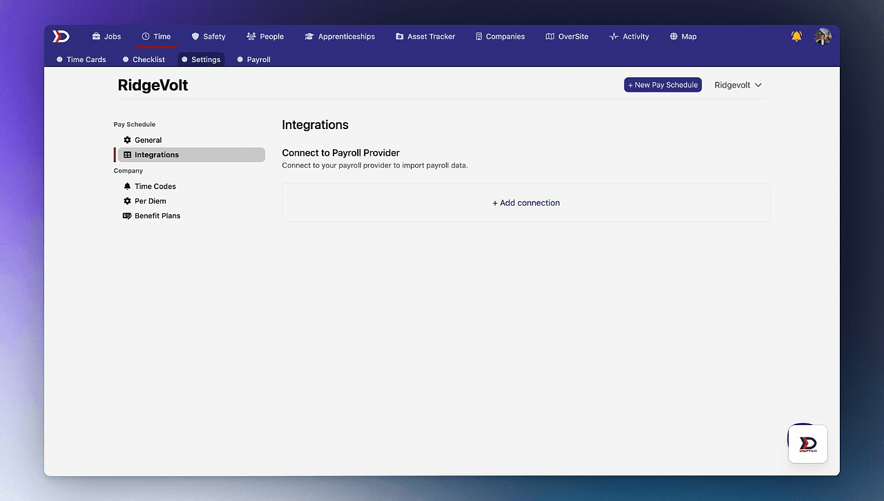 (2) Request payroll integrations be enabled. Please do so by emailing help@dsptch.work to request the feature be enabled.