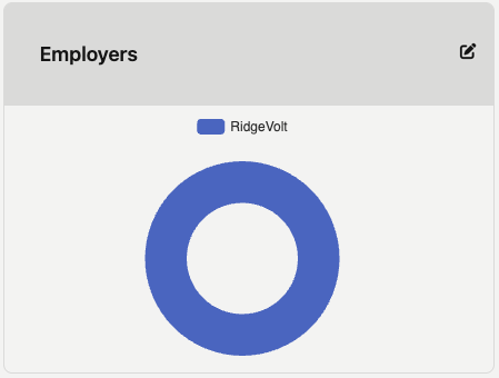 The "Employers" dashboard shows the percentage of apprentices within each apprentice program that are employed by a given employer. For an apprentice program with only one employer (as shown in the image above), the ratio will be 100%.