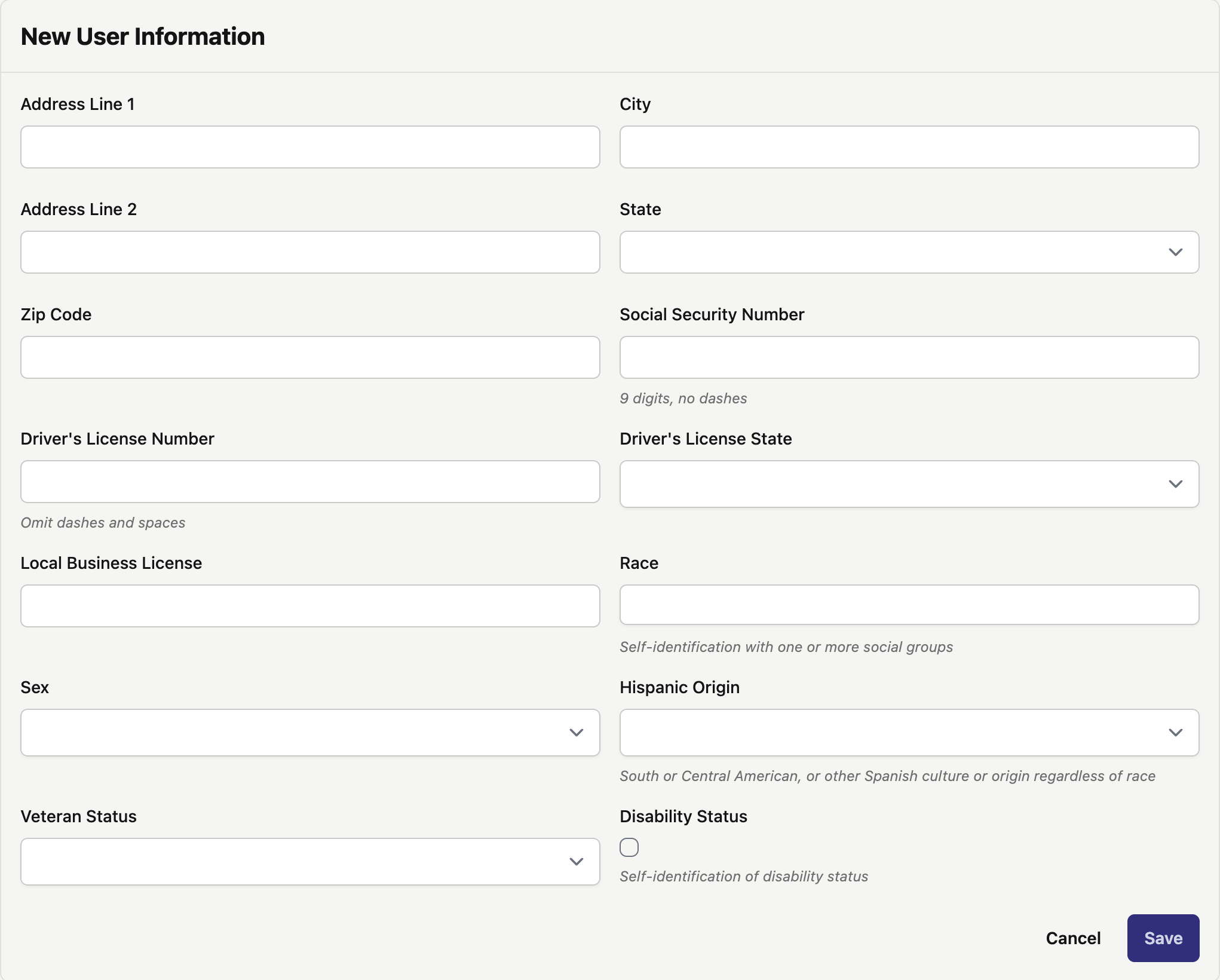 - Dropdown to select if the User is an Employee or Contractor for your Company.