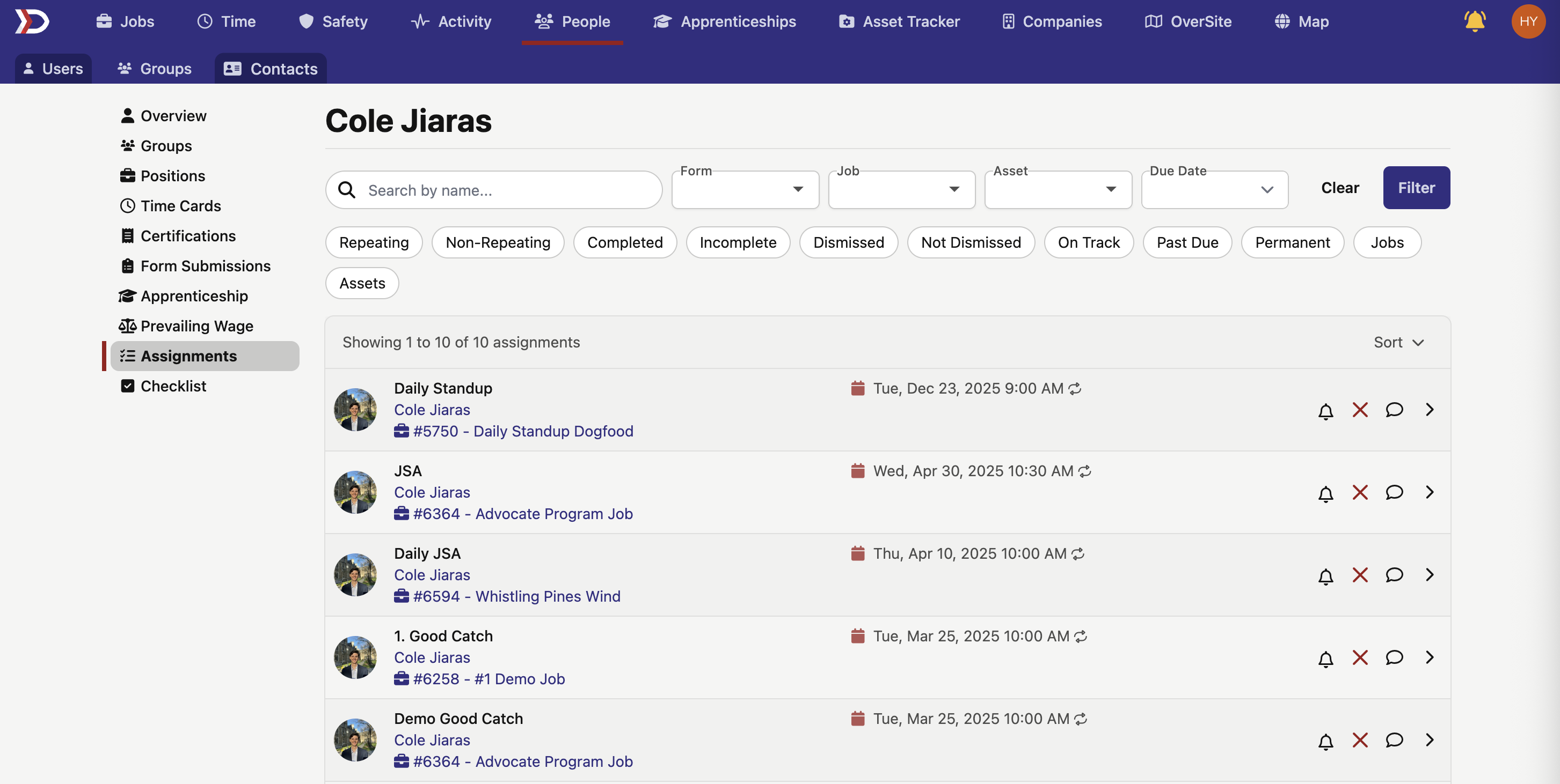 The Assignments Tab houses information regarding the user's assignments in DSPTCH. For more information on assignments in DSPTCH, please read our Assignments help document.
