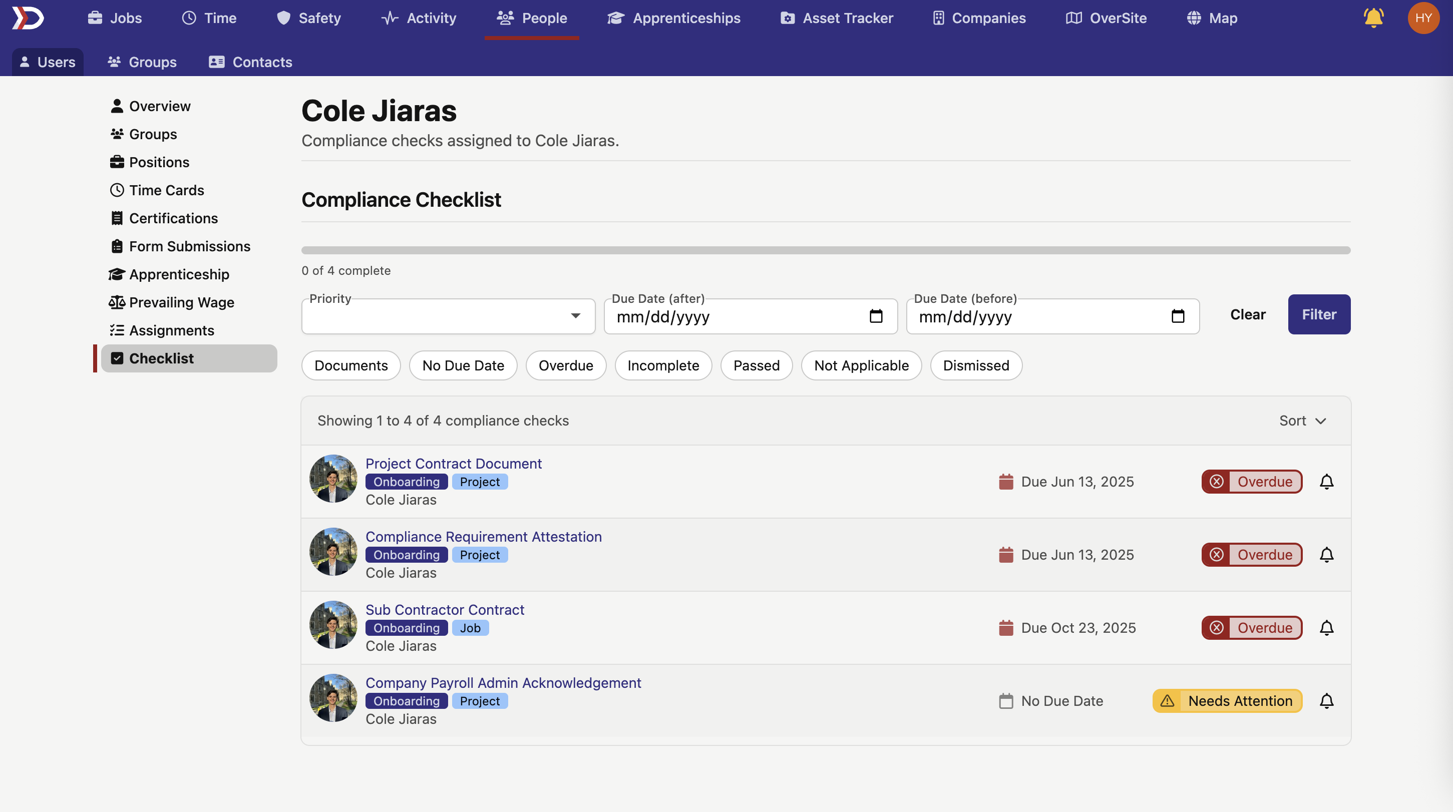 For more information on compliance checks, please read our Jobs Compliance Tab and Projects Compliance Tab help documents.
