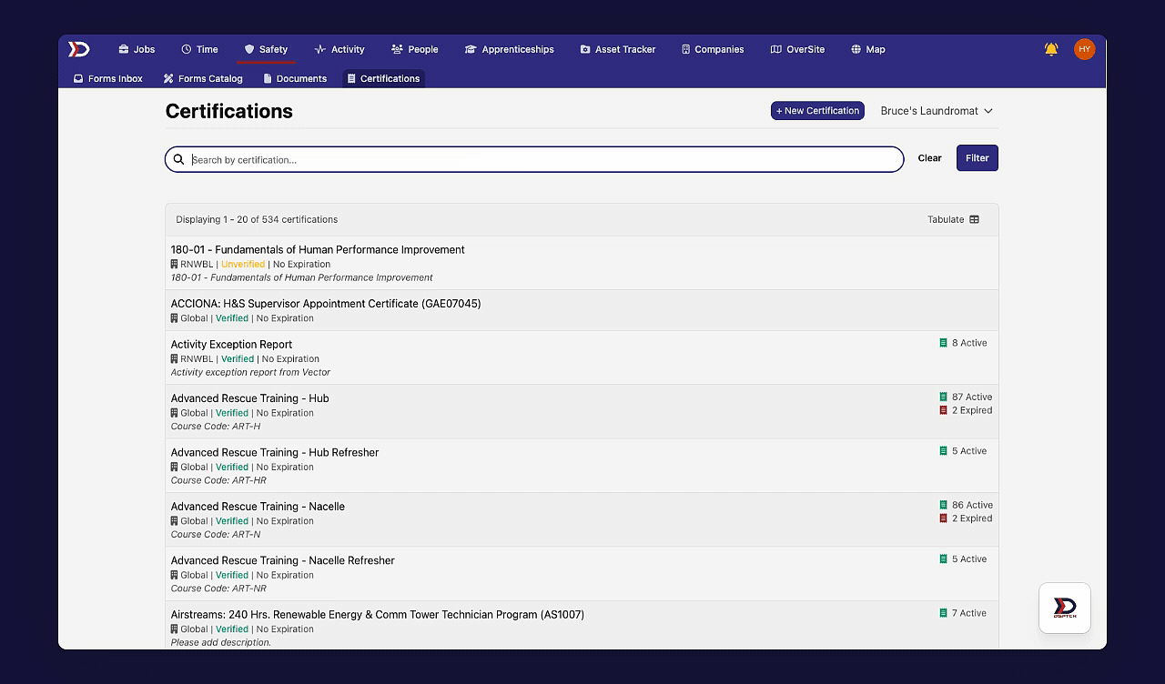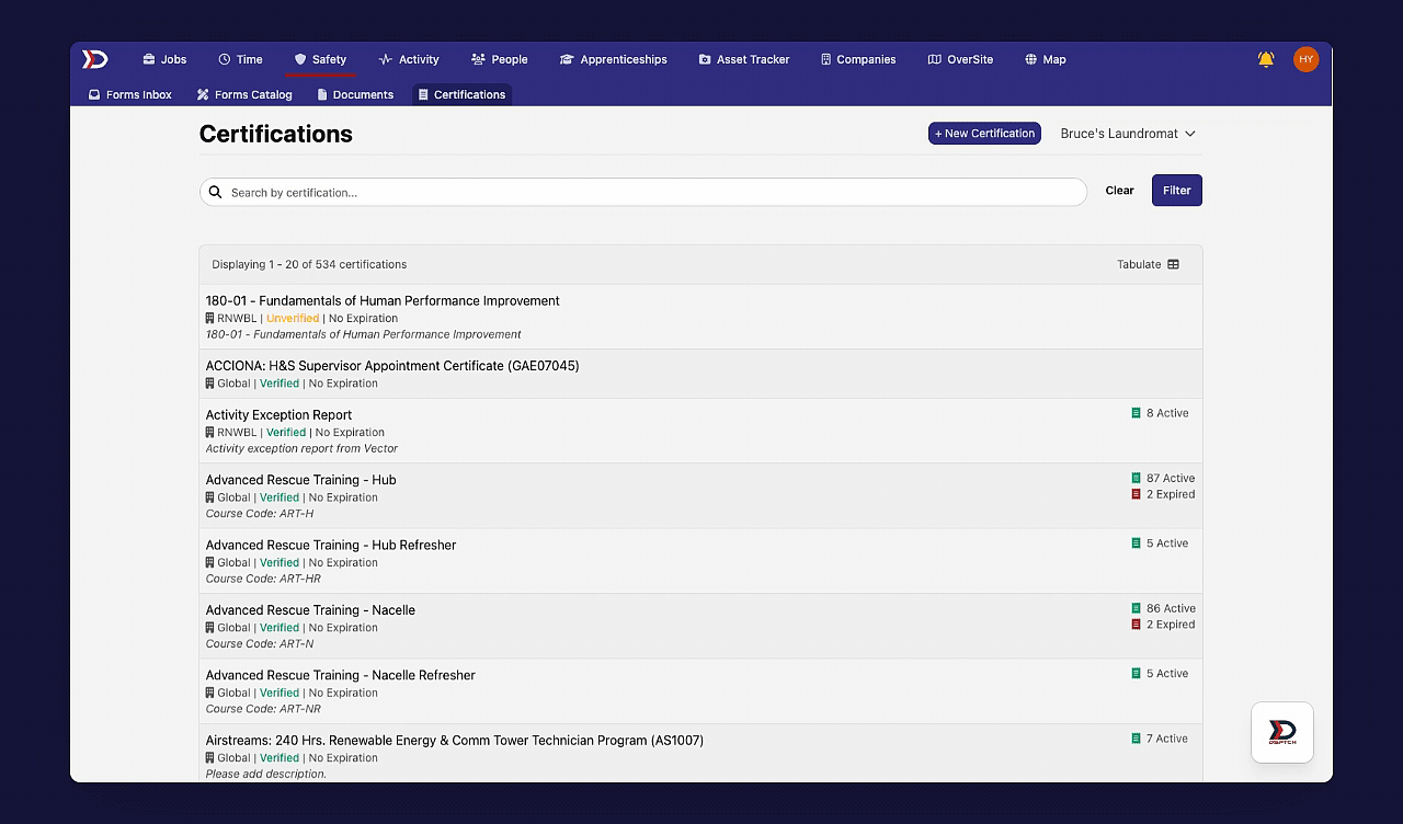 For a detailed walkthrough of how Technicians can upload/view their personal Certifications on DSPTCH Mobile, please read our Certifications – Mobile Help Document.