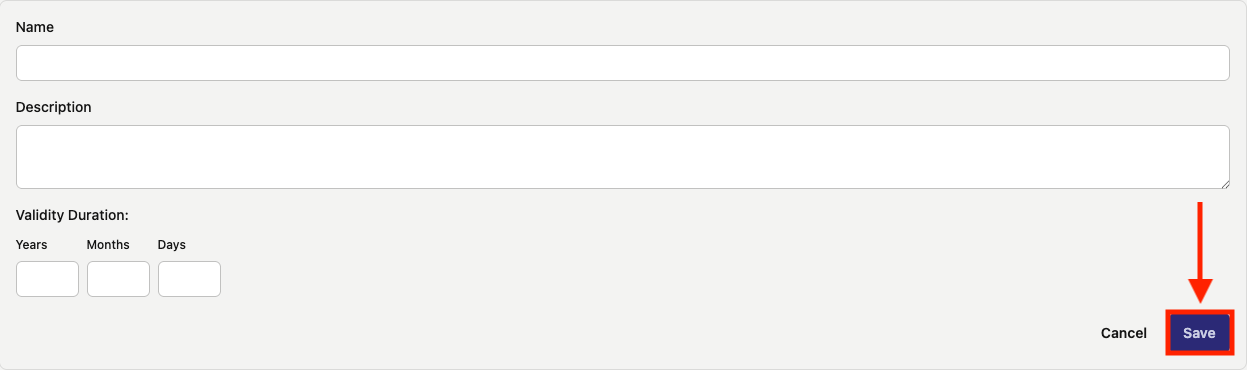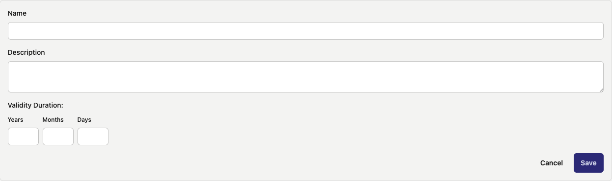 - The duration of time that the new certification type is valid for. The duration can be entered in years, months, days, or a combination of any of the three.
