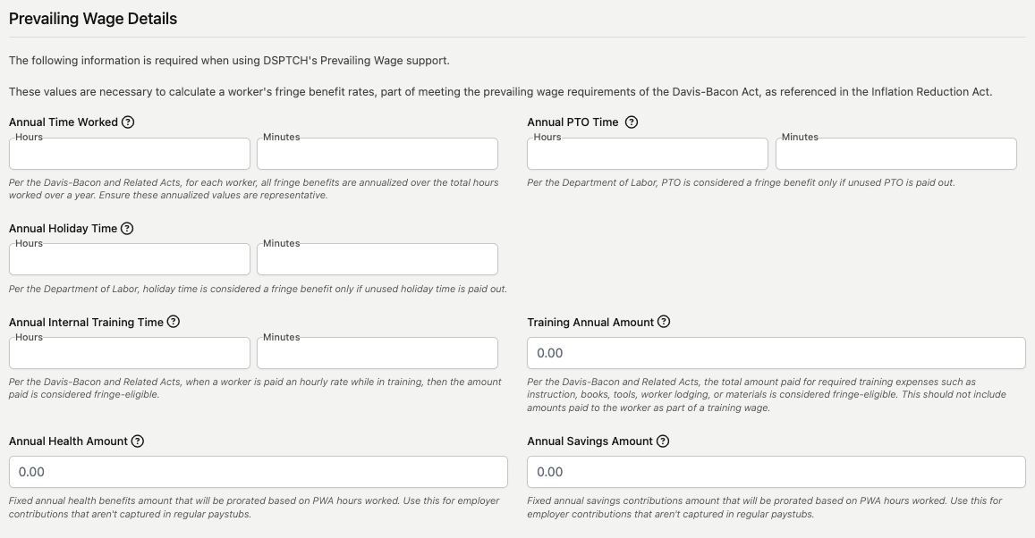 This help document will specifically cover the required fields needed for Users that will be using DSPTCH's Prevailing Wage support.