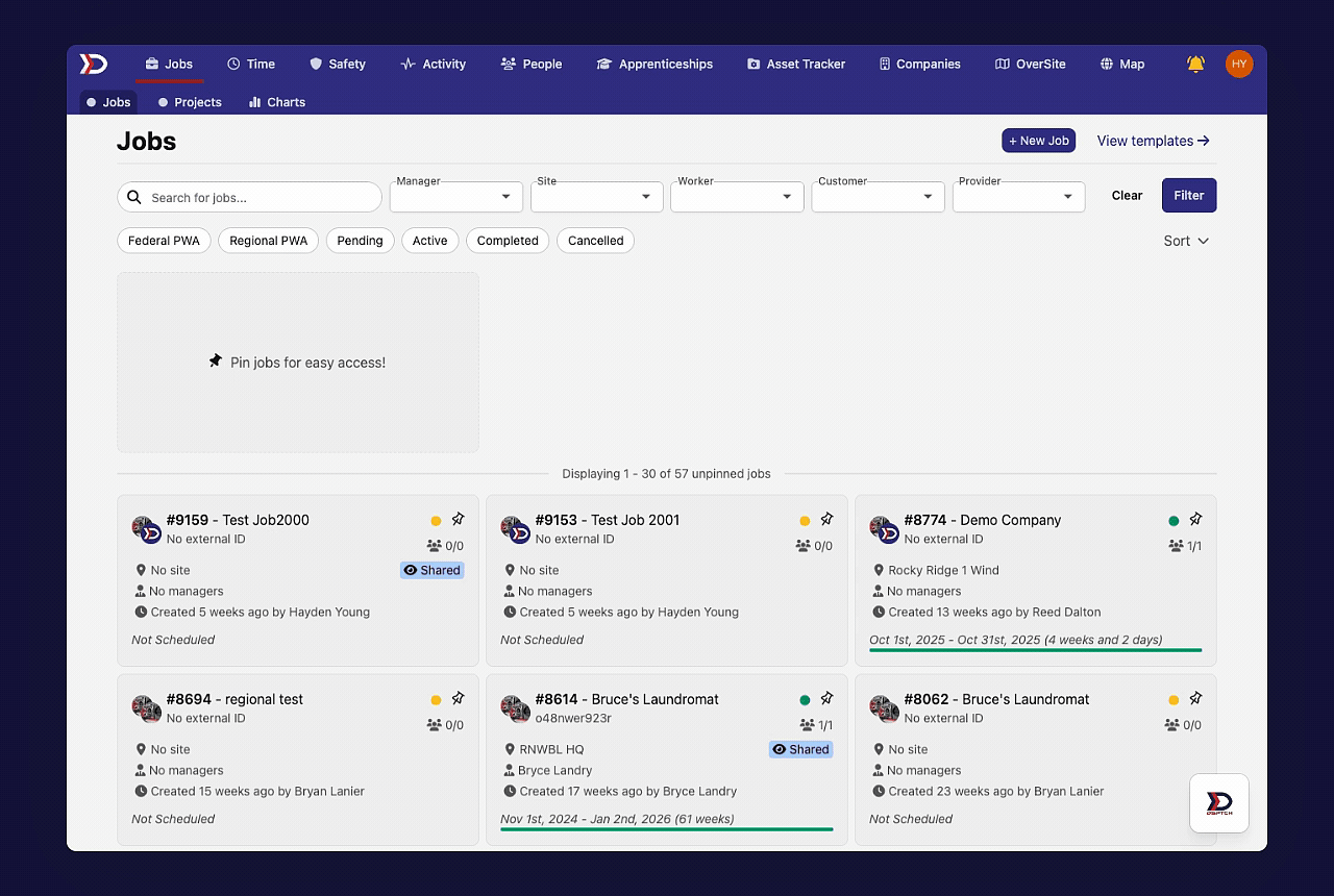 To create a new job, navigate to the "Jobs" page and then click the "+ New Job" button near the top right corner of the page. See the video below for a demonstration: