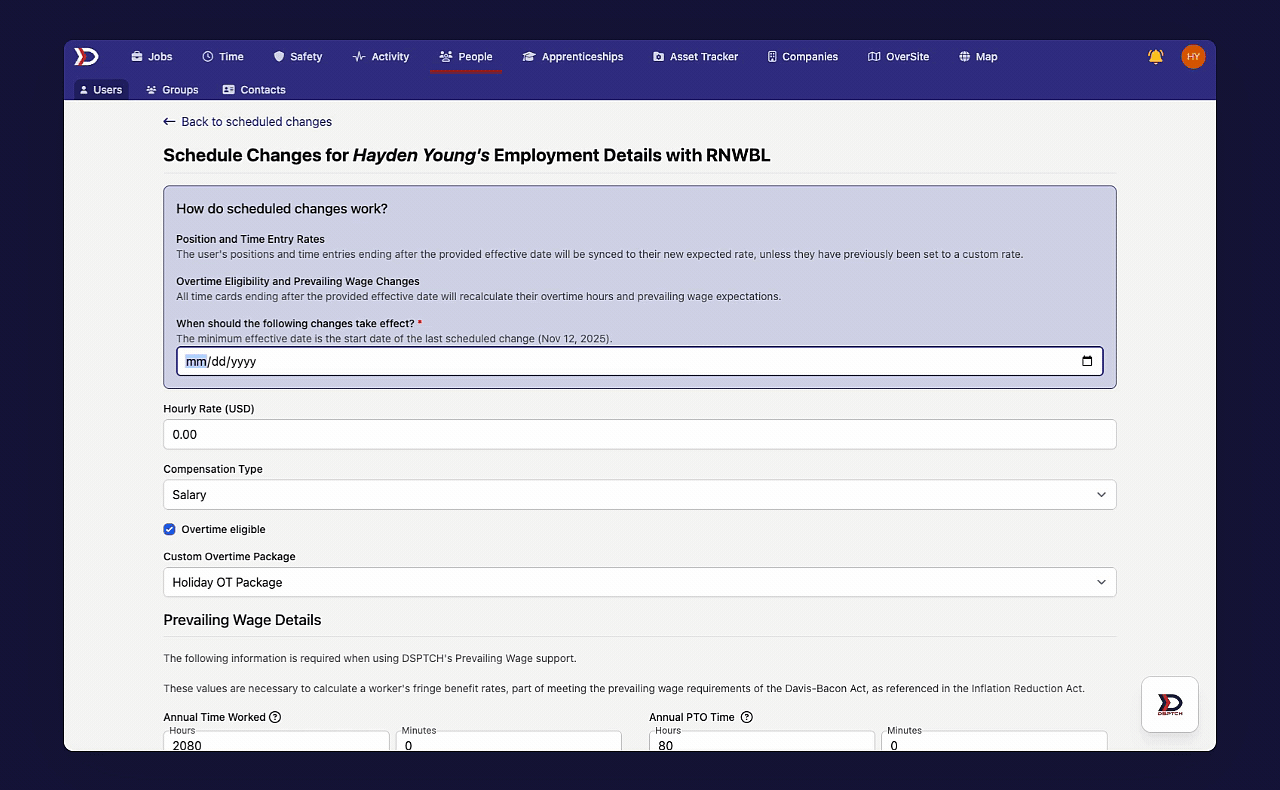 For a deep dive on the "Prevailing Wage Details" section of the "Schedule Changes" form, please read our help document here.