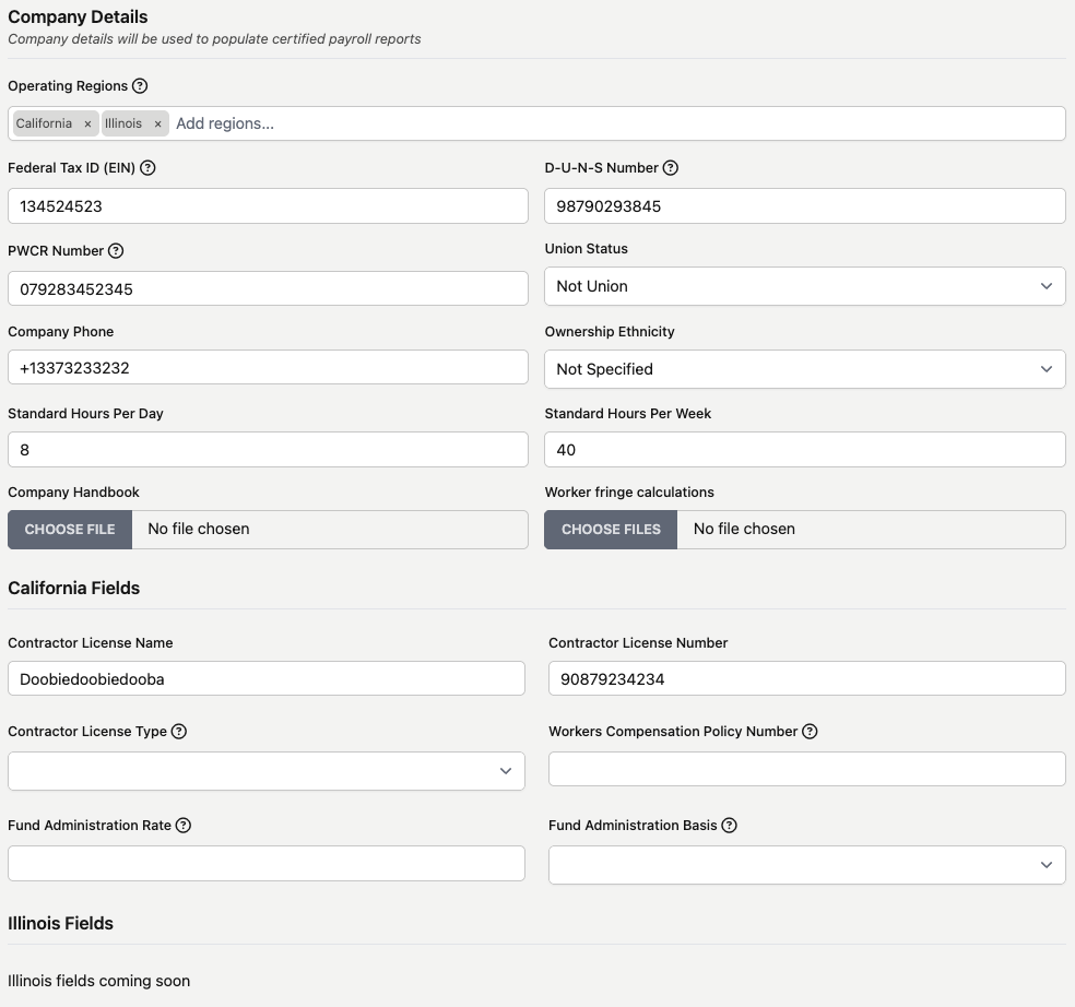 - A dropdown select to choose if your company is Union, Not Union, or Mixed