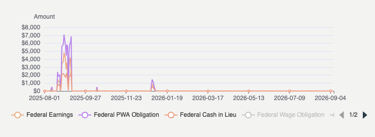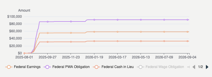 The "Cumulative" view shows how the total PWA obligation, earnings, and cash in lieu of fringe for all Workers on the job accrue across time.