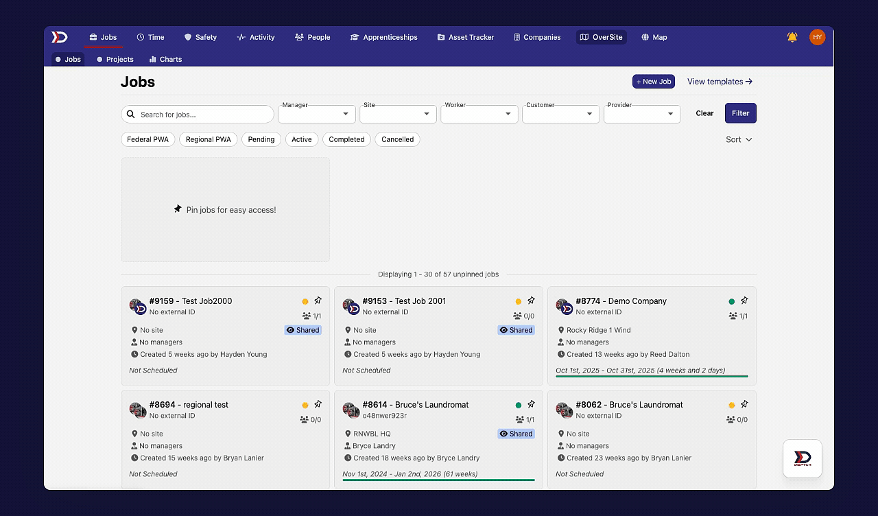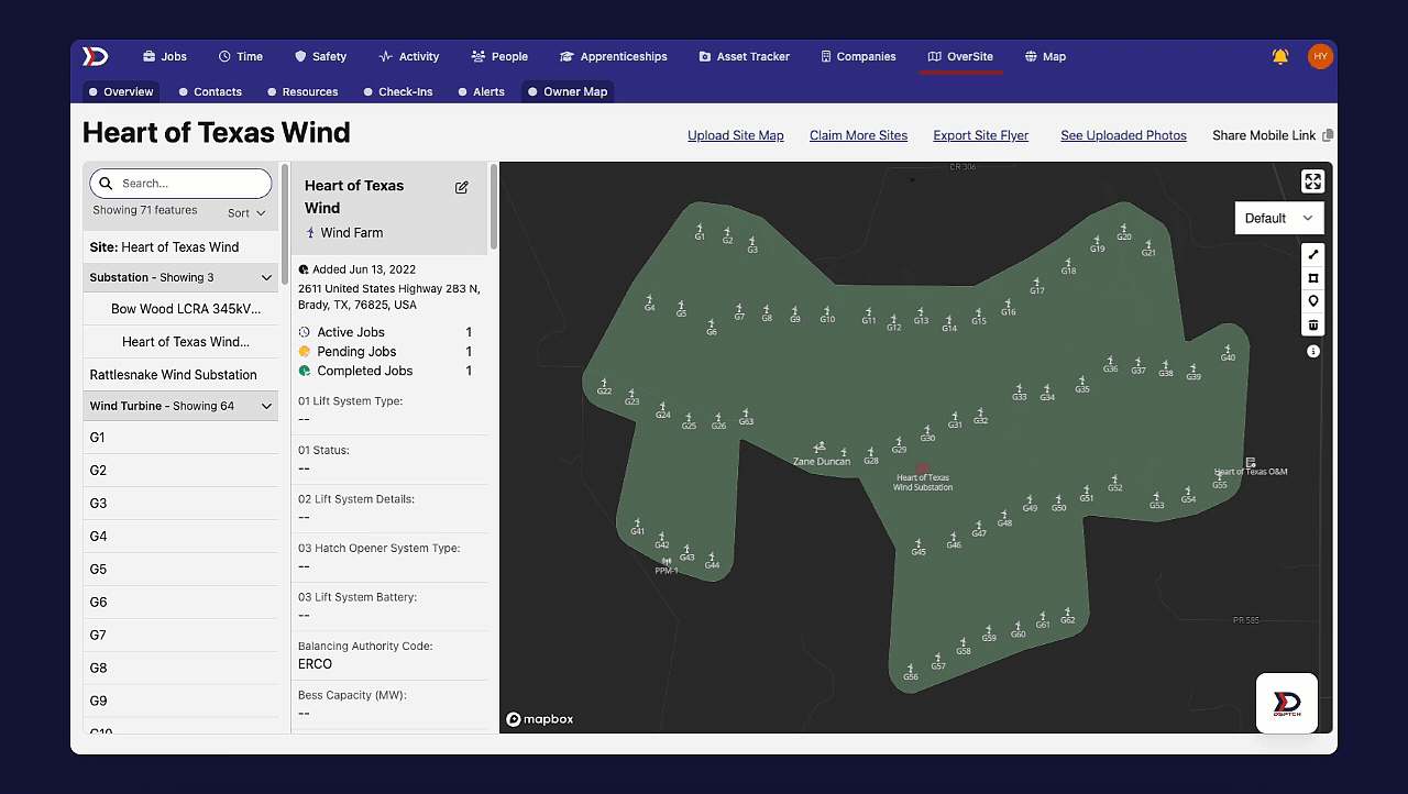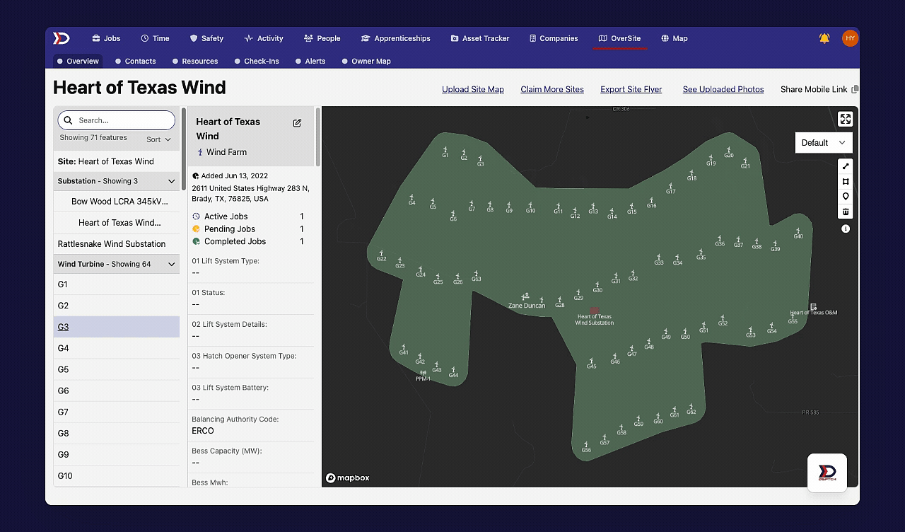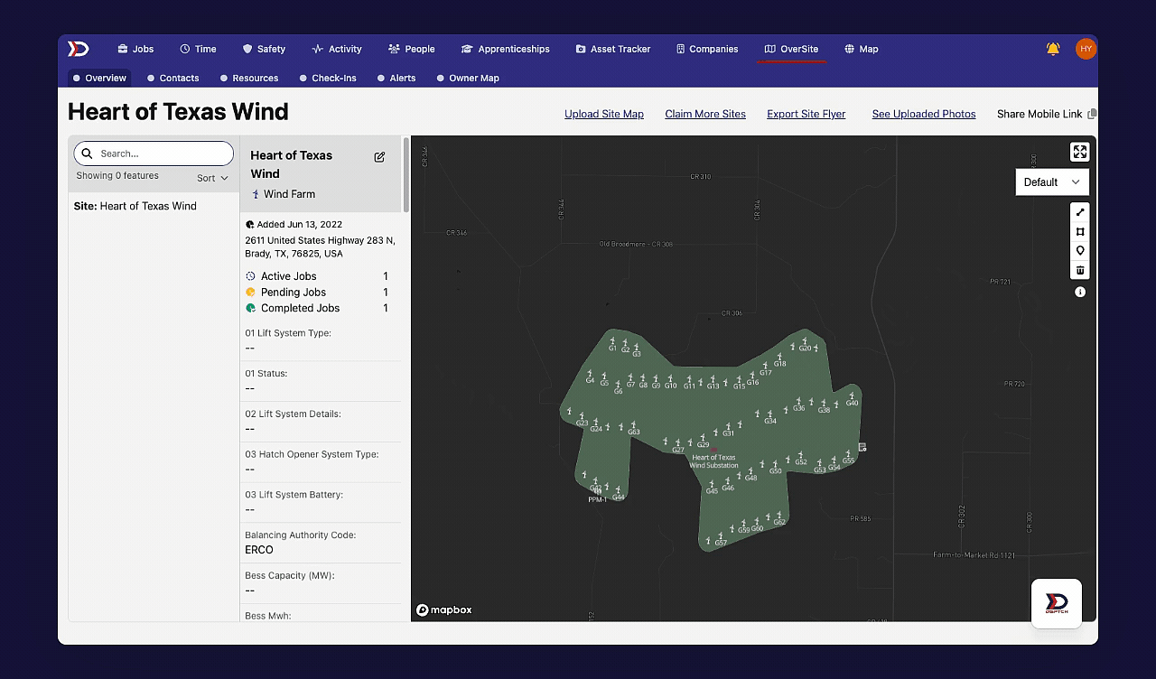 The "Owner Map" tab shows the traditional DSPTCH map, but with only sites displayed by your company.