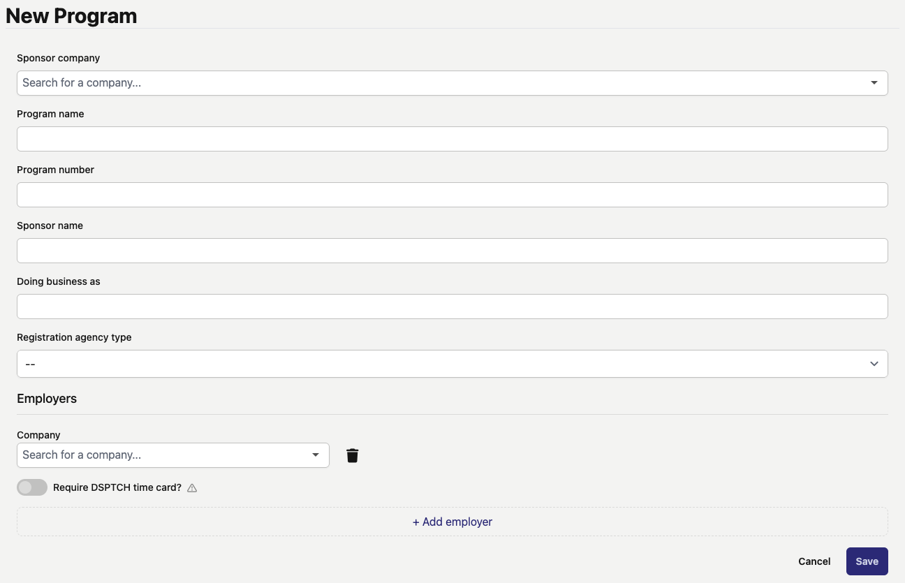 There are several entry fields that must be filled out in the "New Program" form.