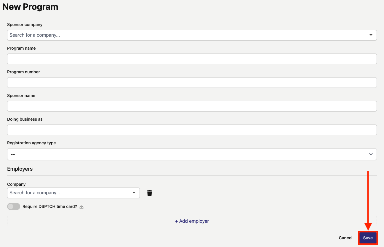Navigating to the New Program Form