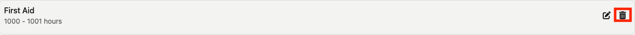 To delete a work process category, click the trash can icon to the right of the edit button (indicated by the red box in the image below).