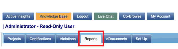 After navigating to LCPtracker and logging in to LCPtracker Pro, look for the "Reports" tab.