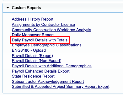Under Reports, look for "Custom Reports". From there, select "Daily Payroll Details with Totals".