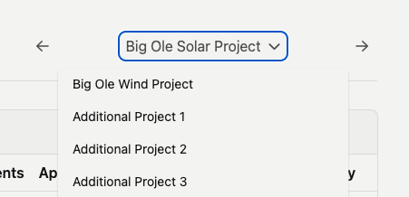 Clicking on the downward facing chevron next to the project name will bring up a menu that lists other projects.