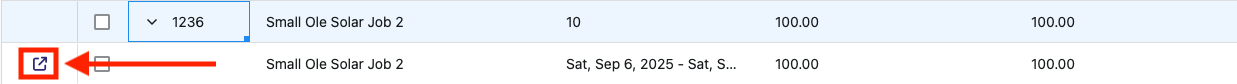 For a more detailed view of each job, click the rightward facing chevron next to the job number of a job (as indicated by the red box and arrow in the image below).