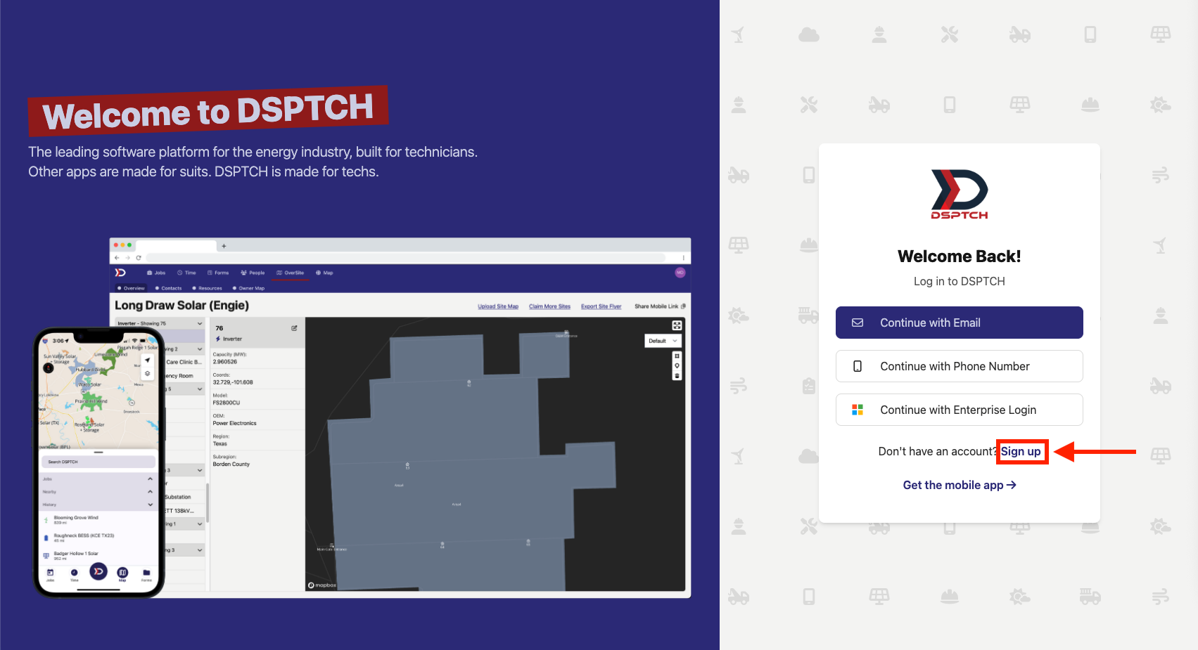 To get started, first navigate to https://dsptch.app