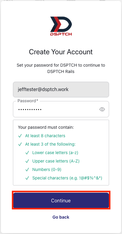This article is for creating a web account on DSPTCH. Web accounts on DSPTCH are typically only for managers, admins, and customers.