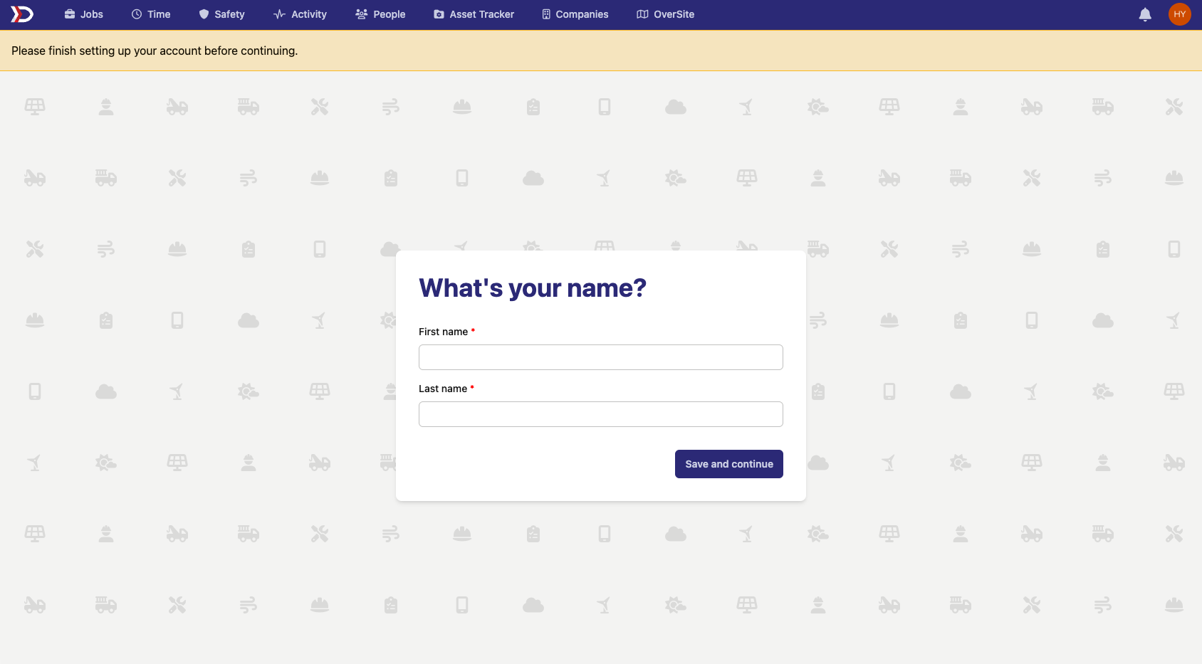 Enter your first and last name. This will be your display name on the website. Technicians and field workers will see this name whenever you approve their time, assign forms to them, etc.