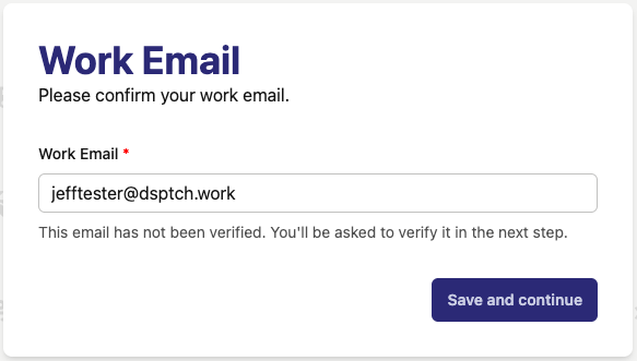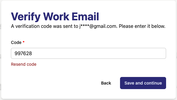 Your work email will likely be the same as the email used to create the account. Be sure to have access to it as there will be a verification email sent.